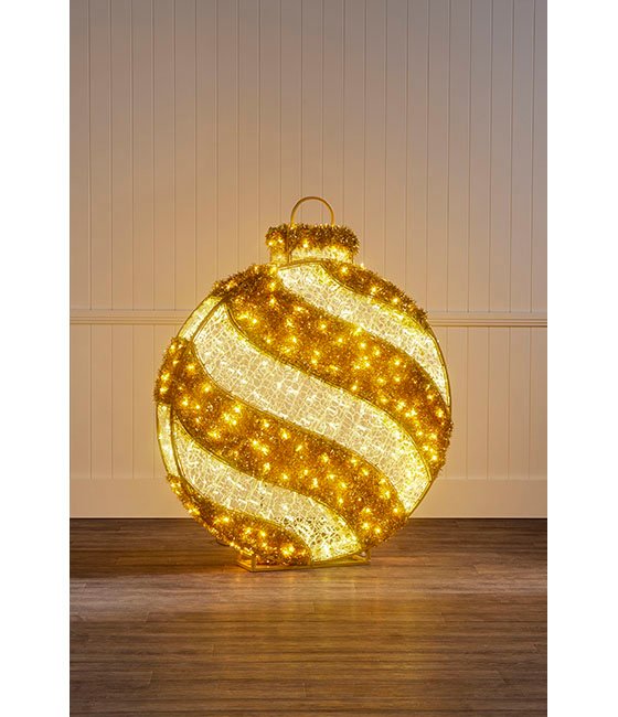 Illuminate your Christmas with our 1.2m Gold Swirl Light Up Bauble. Featuring warm white LED lights and intricately woven gold tinsel, it is designed to add a touch of elegance to your display. This bauble will bring warmth and joy to your display with its traditional gold colour and beautiful swirl pattern.