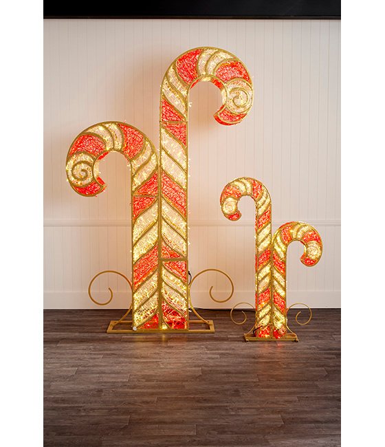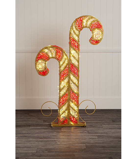 Illuminate your display with our 1.5m Light Up Red and Gold Candy Cane. This stunning piece is designed to complement your Christmas tree with its warm white and red LED lights. Perfect for indoor and outdoor use, this candy cane creates a warm and welcoming glow that captivates everyone’s attention. Pair it with our 2.75m Light Up Candy Cane to complete your display.