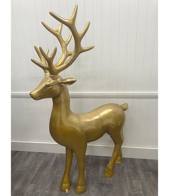 Command attention this Christmas season with our 1.8m Standing Gold Stag. Expertly crafted from high-quality fibreglass, this majestic stag features a metallic gold finish, adding a regal glow to your festive display. Its tall, graceful form and intricate antlers evoke elegance and Christmas spirit, making it a striking addition to both indoor and outdoor settings.
