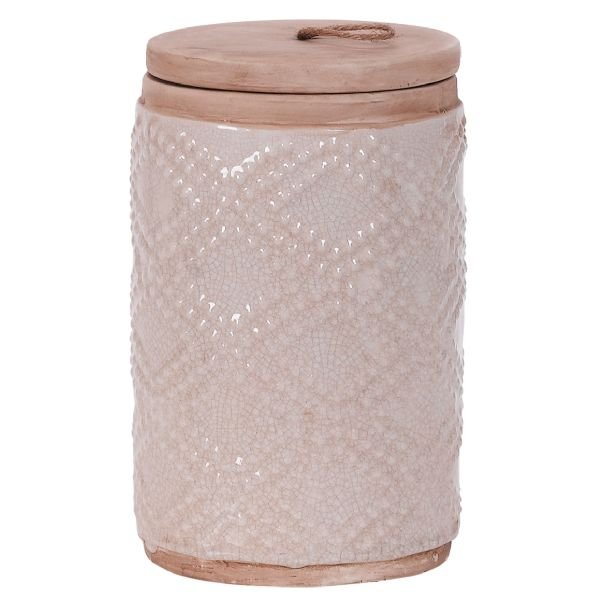 10 inch ceramic vase with wood accents  (cover not inckdued) .