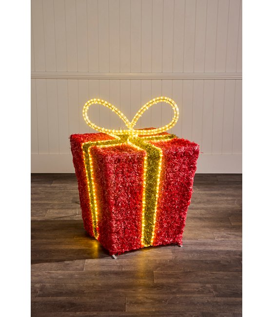 Bring the magic of Christmas to life with our 1m Red and Gold 3D Light Up Gift Box. This extraordinary decoration features a three-dimensional design, intricately wrapped in shimmering red and gold tinsel carpet and adorned with vibrant LED lights. The combination of sparkling tinsel and radiant lights creates a stunning visual effect, making it a standout addition to any indoor or outdoor display. Its classic and captivating design make it the perfect piece to enhance your Christmas display.