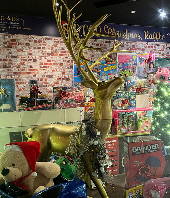 Our exquisite 2.4m Gold Standing Male Reindeer serves as a magnificent centrepiece for your display. Featuring exceptional craftsmanship, highlighted by its large antlers and polished finish, it exudes elegance and sophistication. Ideal for indoor settings, this reindeer commands attention as a striking focal point with its impressive size. Complete your display by adding our 2.4m Gold Leaping Reindeer, elevating your display to a state of grandeur.