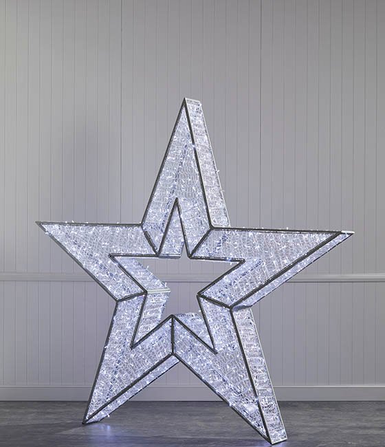 Illuminate your display with our beautifully designed 2.5m Silver Light Up Star. This piece will add elegance to your display with its captivating bright white LED lights, suitable for both indoor and outdoor settings. Pair it with our 80cm, 95cm, 1.2m, 2m or 3m stars, available in either bright white or warm white LED lights, to complement your display.