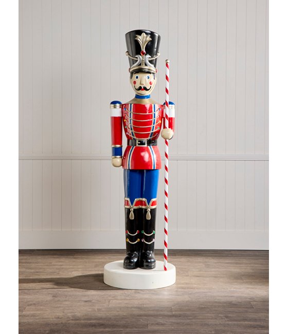 Bring the classic Christmas tradition to life with our “2m Soldier with Baton in Left Hand”, designed to add charm and sophistication to your display. With its vibrant and polished red, blue, and black uniform, holding a candy cane striped baton, this soldier is ready to welcome guests with the joygul spirit. Crafted from durable fibreglass and hand-painted with a glossy finish, this soldier is perfect for shopfronts, entrances, public events, or grand indoor displays.