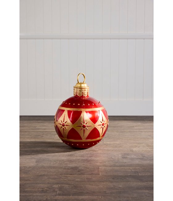 Add a bold pop of festive glamour to your Christmas display with our 59cm Red and Gold Christmas Bauble. Featuring an elegant starburst pattern in gleaming gold over a rich red base, this oversized ornament brings a luxurious holiday touch to any setting.