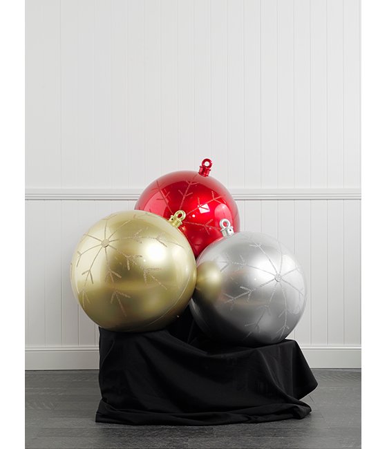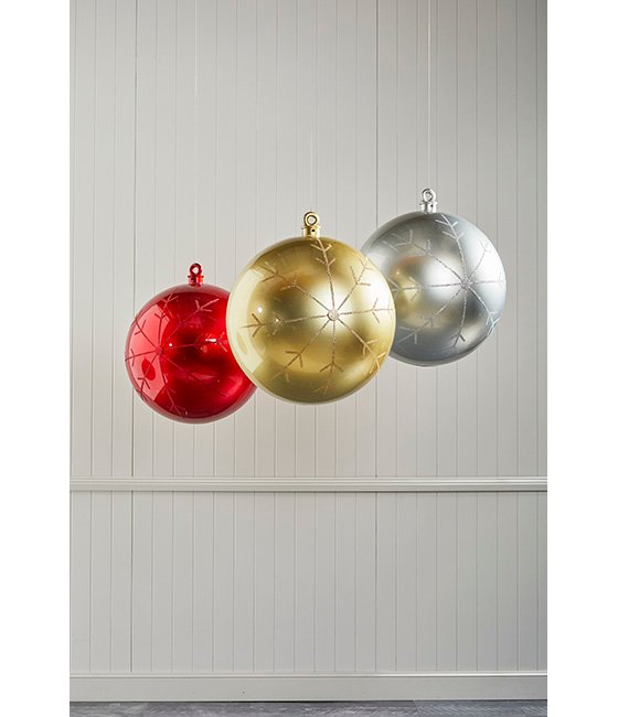 Add a touch of elegance to your display with our 60cm Red Hanging Bauble. Its beautiful craftsmanship features a glossy red finish adorned with an intricately detailed glitter snowflake. This simple yet luxurious design includes a UV protective coating, ensuring its versatility to bring the Christmas spirit both indoors and outdoors.