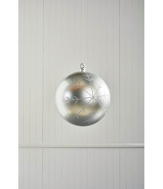 Add a touch of elegance to your display with our 60cm Silver Hanging Bauble. Its beautiful craftsmanship features a glossy silver finish adorned with an intricately detailed glitter snowflake. This simple yet luxurious design includes a UV protective coating, ensuring its versatility to bring the Christmas spirit both indoors and outdoors.