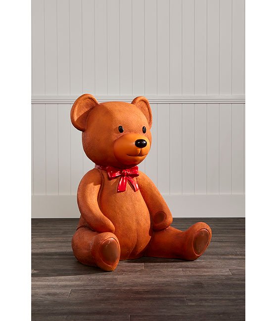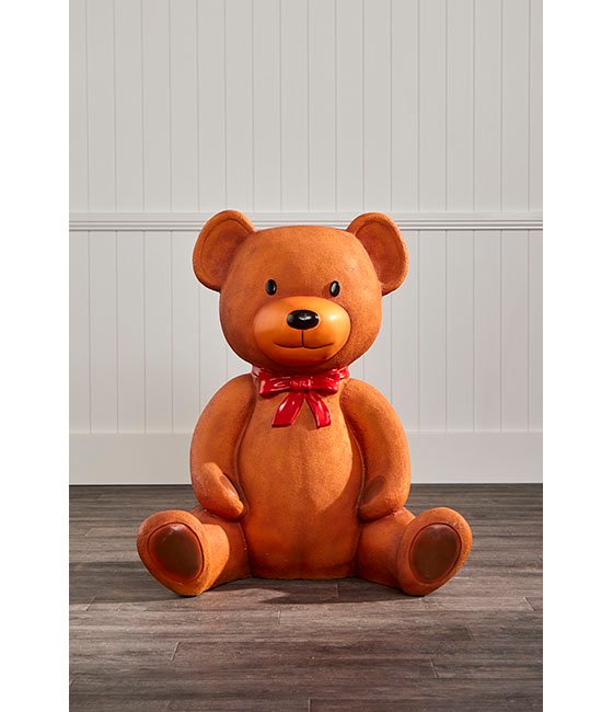 Our 90cm Sitting Teddy Bear is a fantastic addition for your display. Constructed from high-quality fibreglass, it guarantees sturdiness and durability, making it suitable for both indoor and outdoor displays. The teddy bear features an exceptional brown textured finish, complemented by a polished red bow, making it an ideal photo opportunity.