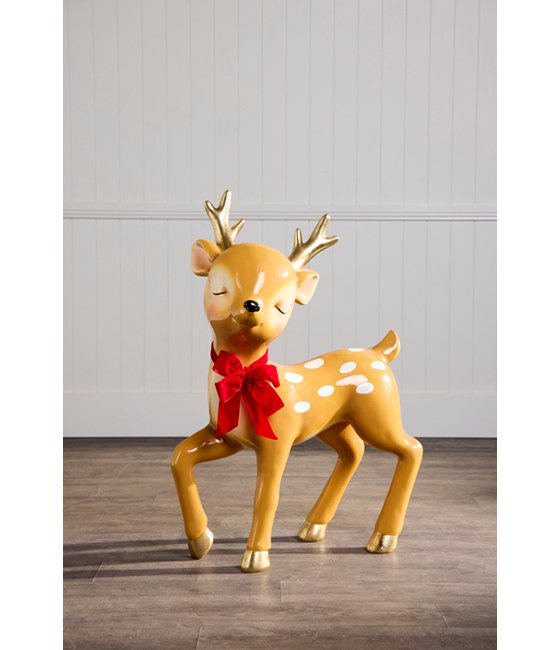 Charming, nostalgic, and full of festive cheer, our 92cm Vintage-Style Reindeer is here to steal hearts. With its sweet closed eyes, golden hooves, delicate white spots, and a bright red bow around its neck, this little deer brings a timeless storybook quality to your Christmas display. Crafted from durable resin and fibreglass with a UV-protective, waterproof coating, it’s perfect for both indoor and outdoor use. Whether placed under a tree, by the fireplace, or as part of a whimsical winter wonderland, this reindeer promises to add warmth and joy to any setting.