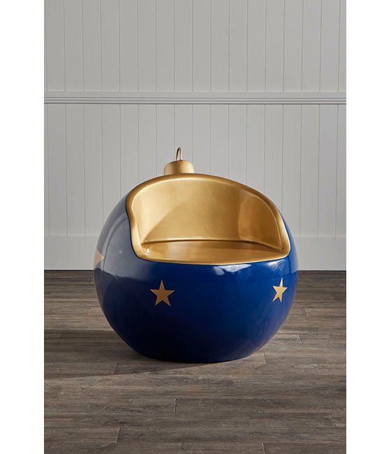 Add a touch of festive charm and comfort to your display with our Fibreglass Bauble Seat. This uniquely designed seated blends style and functionality seamlessly. Mimicking a classic Christmas ornament, it features a polished blue finish adorned with gold stars and a golden interior. Crafted from high-quality fibreglass, it guarantees sturdiness and durability, suitable for both indoor and outdoor settings. Perfect for creating a festive atmosphere in homes, shopping centres, or corporate settings, this bauble seat invites everyone to relax and enjoy the magic of the Christmas season.