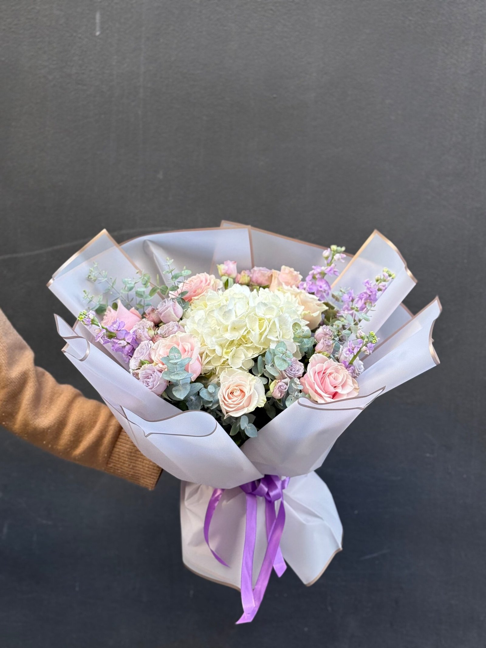 La foto muestra un ejemplo de nuestro ramo tamaño M, pero en Florex te ofrecemos algo verdaderamente especial: un ramo único, diseñado exclusivamente para ti.