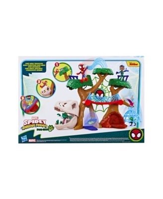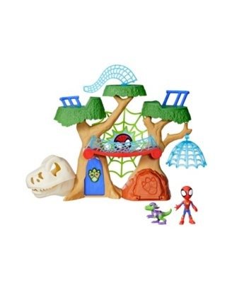 Imagine swinging into dino-chomping action and adventure with the Marvel Spidey and His Amazing Friends Dino-Webs Treehouse This girls boys action figure playset features a platform trap, dino fossil cave, collapsing web bridge, falling web cage, and more The Dino-Webs Treehouse also comes with a 4-inch-scale 10cm Spidey action figure and a 2.5-inch 6cm Goblin Raptor toy, so preschool kids can race into action to help Team Spidey take down the baddies Inspired by the Marvel preschool show, kids will love hanging with their favorite Marvel Superheroes and recreating epic adventures. Encourage big, imaginative adventure play for kids with more Spidey and his Amazing Friends toys Each sold separately. Subject to availability. Copyright Marvel. All trademarks and registered trademarks are the property of their respective owners. Hasbro and all related trademarks and logos are trademarks of Hasbro, Inc.
