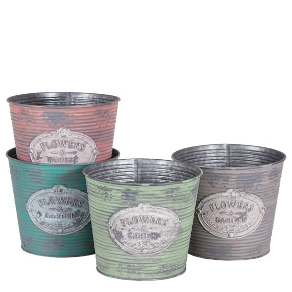Flower Tin Pot 7 x 6.5 inch Aqua