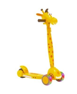 - SAFE FUN SCOOTER FOR KIDS – The Toys R us – Geoffrey the giraffe Electric Scooter features an easy lean-to-steer design.
