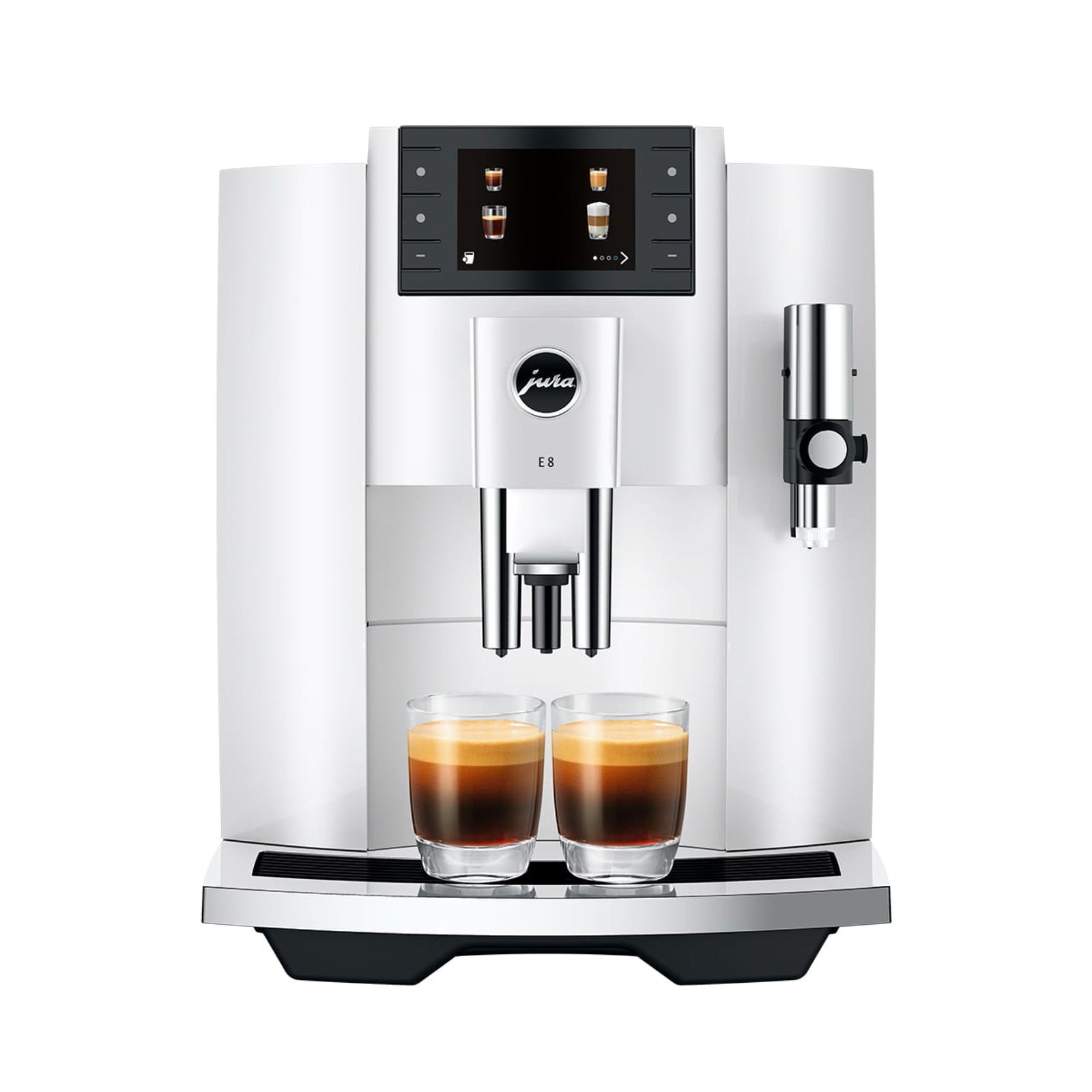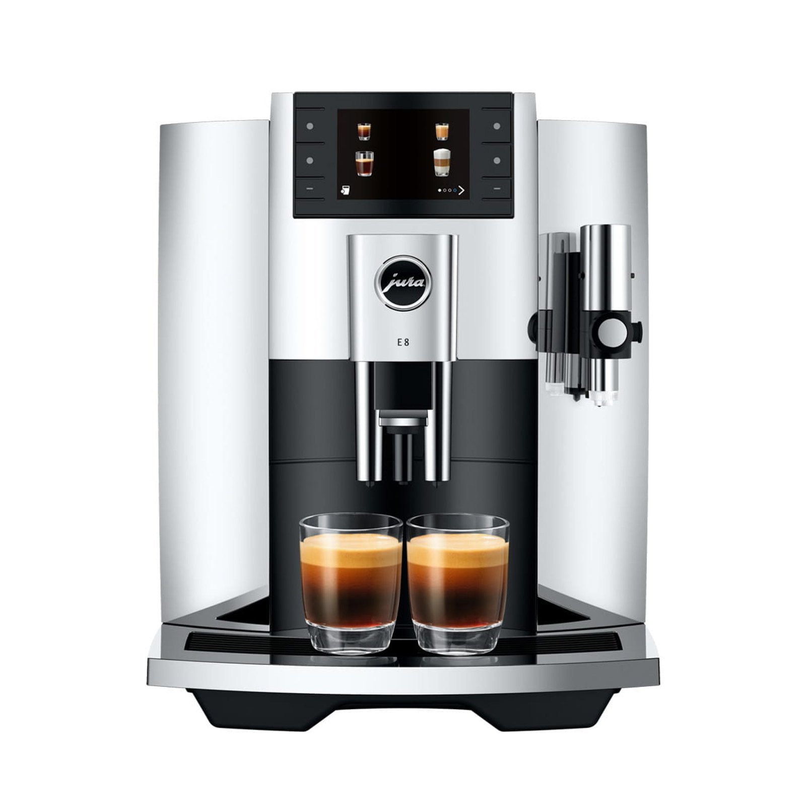 Brew espresso and froth milk at home automatically with the Jura E8 Superautomatic Espresso Machine! The machine’s built-in grinder makes short work of whole bean coffee, and this premium automatic espresso and coffee maker features Jura’s patented PEP brewing system, which delivers some of the tastiest, most consistent espresso around. The Jura E8’s bean hopper acts as convenient coffee bean storage, and the easy to clean milk frother is great for frothing oat milk, soy milk, almond milk, and traditional dairy. Finally, the Jura E8 has a simple interface and is easy to maintain, making it easy to fit into your morning routine!