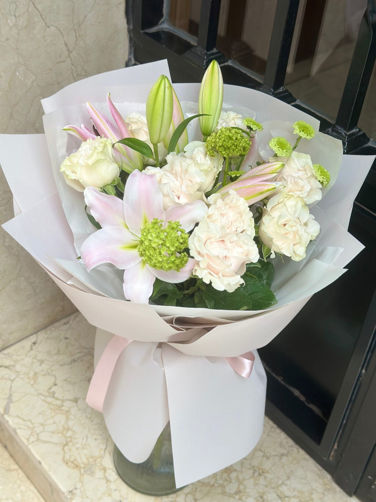 Nuestros ramos se componen de las flores más frescas y de temporada disponibles en el momento de tu pedido. Tenemos en cuenta tus preferencias en cuanto a la forma, composición y presupuesto del ramo para asegurarnos de que se ajuste perfectamente a tus necesidades.