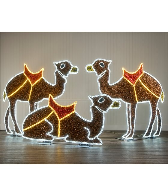 Celebrate the true meaning of Christmas with our stunning Light Up Nativity Scene. This light-up set is composed of individually sculpted characters that can be arranged together or separately to suit any display space. This piece features the LED Laying Camel — which can be combined with additional figures including the standing camels, Three Wise Men, Holy Family, shepherd, sheep, donkey, and a gold crib arch. Please note: these additional figures are sold separately.
