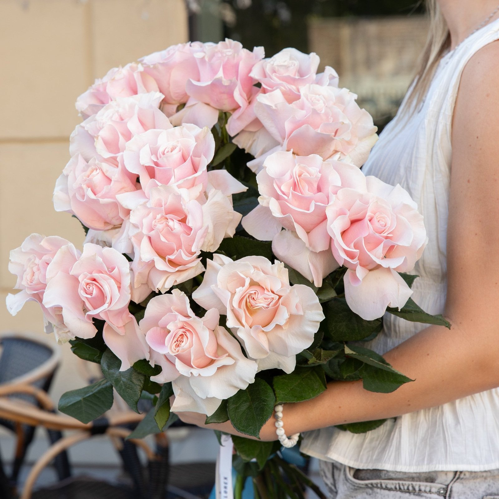 La foto muestra un ejemplo de nuestro ramo tamaño S (15 rosas francesas), pero en Florex te ofrecemos algo verdaderamente especial: un ramo único, diseñado exclusivamente para ti.
