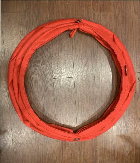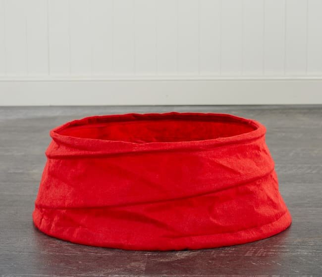 This design is made from a red felt style fabric which when you release the Paddington coat style buttons on each side pops up to cover the stand of your Christmas tree making it a stylish and contemporary way to style the base of your Christmas tree before Santa arrives with presents!