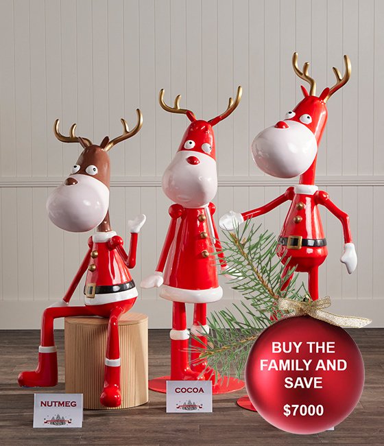 Introducing our delightful life-size Christmas moose boy named Gallop, a vibrant addition to your display that promises to bring joy and Christmas cheer. Adorned in red clothing, this cheerful moose is more than just a decoration—it’s a statement piece that embodies the spirit of Christmas fun. Crafted with meticulous attention to detail, from its gold antlers and red jacket to its playful expression, our Christmas moose will enchant guests of all ages. Make this Christmas season unforgettable with a splash of colour and a dash of fun, courtesy of our Christmas moose. Complete the set with our Sitting Moose Boy Nutmeg and Standing Moose Girl Cocoa.