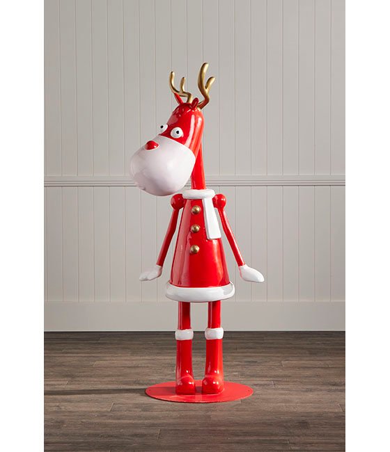 Introducing our delightful life-size Christmas moose girl named Cocoa, a vibrant addition to your display that promises to bring joy and Christmas cheer. Adorned in red clothing, this cheerful moose is more than just a decoration—it’s a statement piece that embodies the spirit of Christmas fun. Crafted with meticulous attention to detail, from its gold antlers and red jacket to its playful expression, our Christmas moose will enchant guests of all ages. Make this Christmas season unforgettable with a splash of colour and a dash of fun, courtesy of our Christmas moose girl. Complete the set with our Sitting Moose Boy Nutmeg and Standing Moose Boy Gallop.