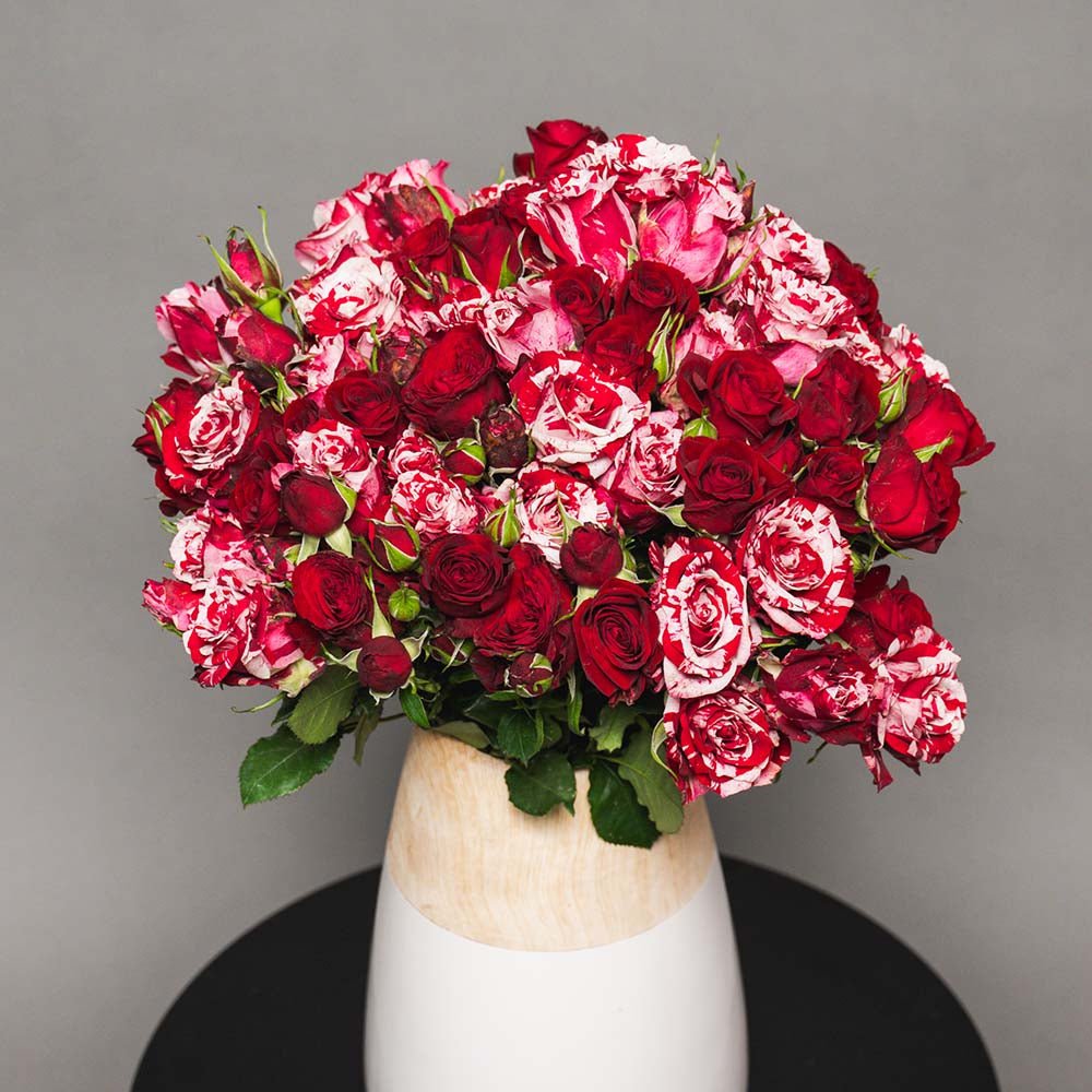 Many people ask, “What are spray roses?” and are curious about their appearance. Such flowers are popular among lovers of the unusual. The combination of bright colors creates a stunning look. Such spray roses look like a real work of art. A bouquet of Crazy Rosever roses can be noticed from afar due to its color saturation.