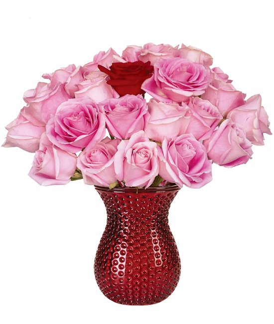 There are times when only an unabashedly romantic gift will do. This fabulous surprise includes twenty four of the loveliest long stemmed pink roses grown, with a dab of one red rose for that one-of-a-kind look for that one-of-a-kind person.