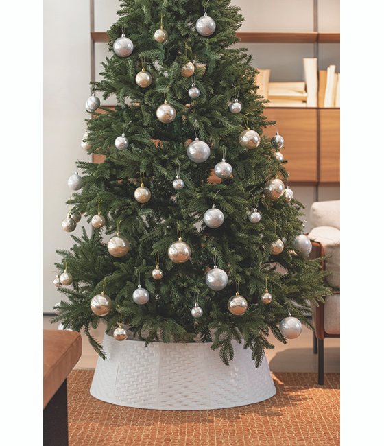 This rattan look Christmas Tree collar is made from durable plastic and is easy to clean. It is suitable to cover the base of both fresh and artificial Christmas Trees. Simply “click” the sides together for quick assembly and disassembly for compact storage.