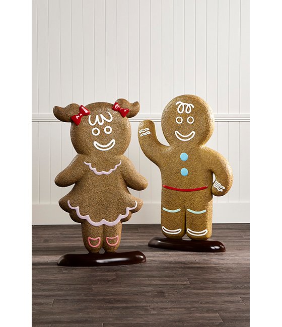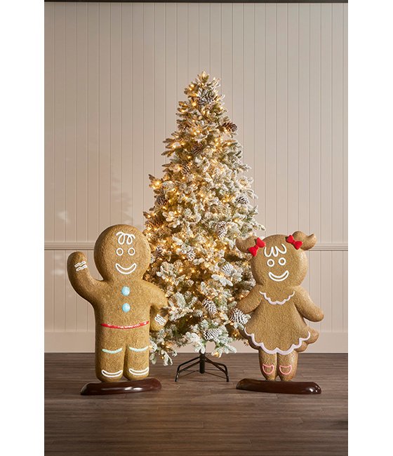 Our 1.14m Gingerbread Boy is a fantastic addition to enhance your Christmas display. Crafted from a combination of resin and fibreglass, it guarantees sturdiness and durability. It features a brown textured finish with icing-looking details. Whether welcoming guests in an entryway, or nestled beside your Christmas tree, this gingerbread boy will bring joy to any display with its festive spirit. Pair it with our 1.07m Gingerbread Girl to complete your display.