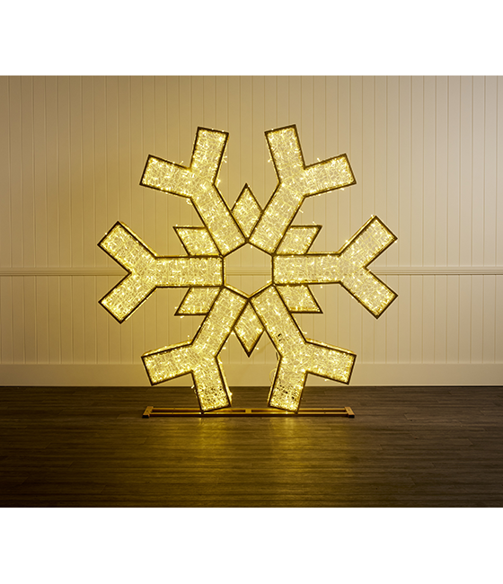Illuminate your Christmas display with our 1.26m Gold Light Up Snowflake. This snowflake features a gold frame adorned with warm white LED lights, making it perfect for a winter-themed display. Pair it with our 84cm and 2.09m Gold Light Up Snowflakes to complete your display.