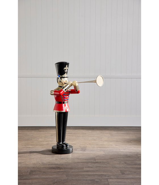 Standing proudly at 1.2 metres tall, our Black, Red and Gold Soldier with Trumpet brings a festive grandeur and timeless charm to any Christmas display. Expertly crafted from durable fibreglass and hand-painted with rich colours in a glossy finish, this piece embodies the spirit of tradition and celebration. Dressed in a polished red coat with gold accents and deep black trousers, the soldier holds a golden trumpet as if sounding the arrival of Christmas joy. Whether placed at a venue entrance, nestled among a marching band setup, or used as a standalone statement, this striking figure will instantly adds elegance and enchantment to your space.