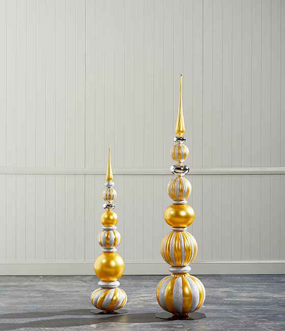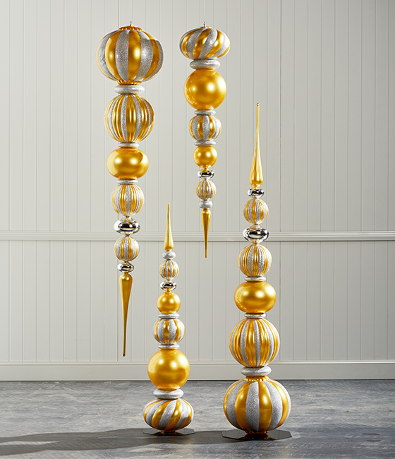 Our 135cm Standing Finial is the perfect addition to complete your Christmas display. Its exceptional craftsmanship features a standing finial adorned with a gold and silver glossy finish, complemented by silver glitter that adds a touch of elegance and luxury. With a UV protective coating ensuring durability, it is versatile for both indoor and outdoor displays. Pair it with our matching 135cm and 190cm standing and hanging finials to complete your display.