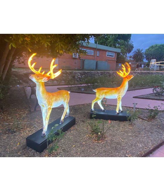 Elevate your Christmas display with this magnificent Light Up Christmas Reindeer. Standing at 1.5 metres tall, its exceptional craftsmanship blends orange and white hues with warm white tones, casting a magical glow to illuminate your display. Whether beside a mantlepiece or nestled next to your Christmas tree, this reindeer brings warmth and elegance to any display.