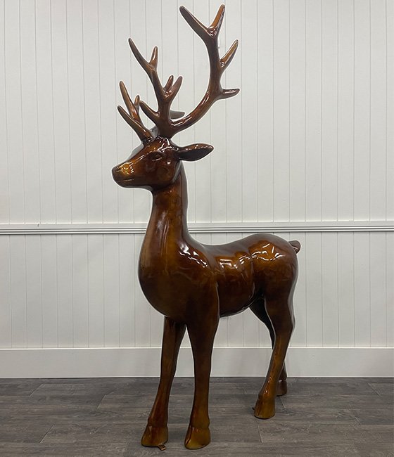 Command attention this Christmas season with our 1.8m Standing Copper Stag. Expertly crafted from high-quality fibreglass, this majestic stag features a radiant copper finish and lifelike antlers, bringing both grandeur and warmth to your festive display. Its tall, graceful form and intricate antlers evoke elegance and Christmas spirit, making it a striking addition to both indoor and outdoor settings.