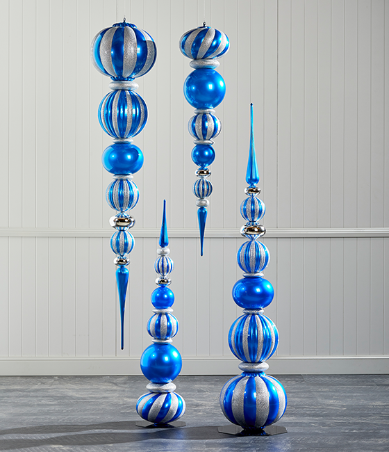 Our 190cm Standing Finial is the perfect addition to complete your Christmas display. Its exceptional craftsmanship features a standing finial adorned with a blue and silver glossy finish, complemented by silver glitter that adds a touch of elegance and luxury. With a UV protective coating ensuring durability, it is versatile for both indoor and outdoor displays. Pair it with our matching 135cm and 190cm standing and hanging finials to complete your display.