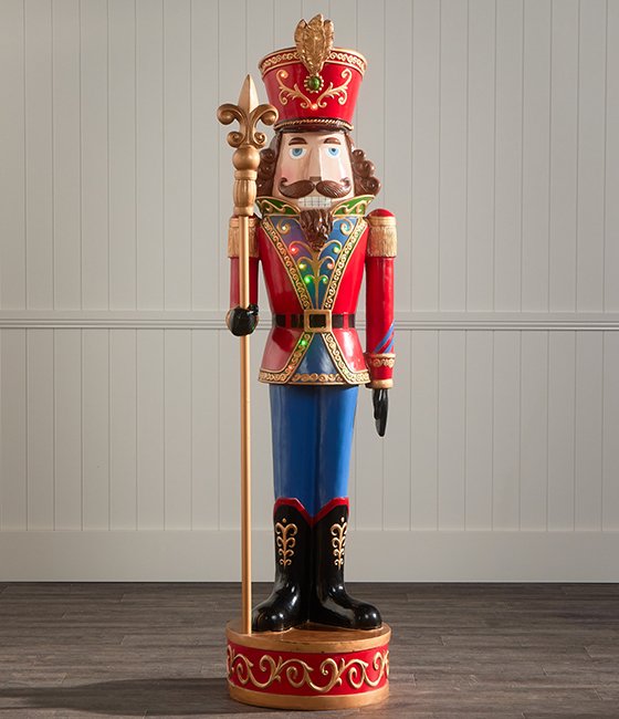 Our Christmas Soldier stands at an impressive 1.8 metres tall, bringing grandeur and traditional Christmas spirit to any display. Finished in glossy red, blue, gold, and black, our soldier is dressed in a richly detailed uniform. Complete with a sceptre and multicolour LED lights, this striking figure commands attention wherever he stands.