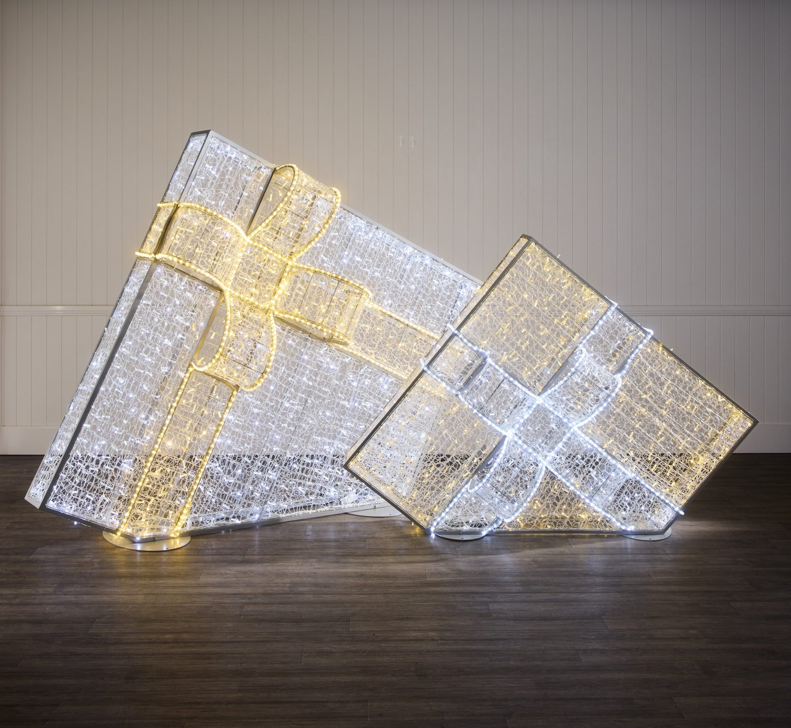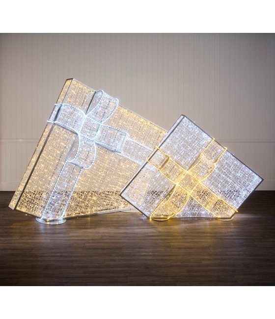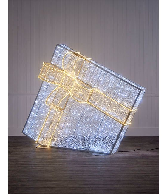 Illuminate your Christmas with our 2m Dual Colour Angled Gift Box, meticulously crafted to captivate with a combination of Warm White and Bright White LED lights. Utilising advanced switching light technology, this gift box will become the focal point of any Christmas display. With the convenience of a remote control, seamlessly alternate between four lighting modes to illuminate the bow and body in either warm white or bright white lights. Embrace the magic of Christmas with our Dual Colour Angled Gift Box—an essential addition that brings a sense of luxury and sophistication to any display.