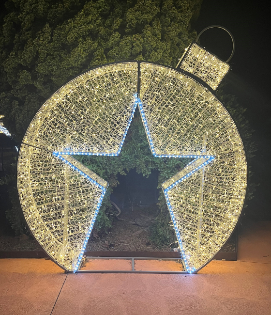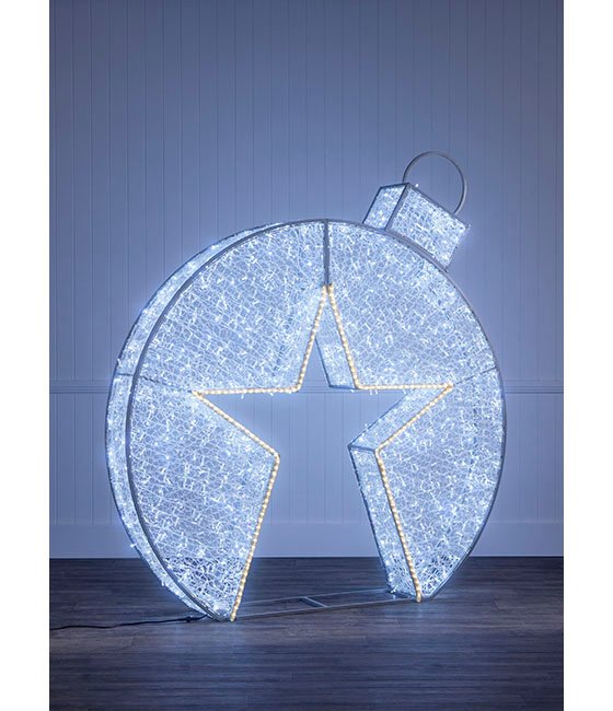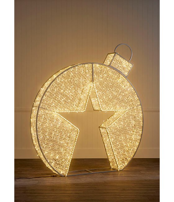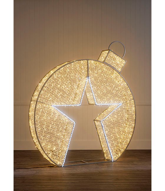 Illuminate your Christmas with our 2m Dual Colour Star Cut-Out Light Up Bauble, meticulously crafted to captivate with a combination of warm white and bright white LED lights. Utilising advanced switching light technology, this bauble will become the focal point of any Christmas display. With the convenience of a remote control, seamlessly alternate between four lighting modes to illuminate the top and body in either warm white or bright white lights. Perfect for capturing memorable photos under its starry glow, our cut-out bauble brings the magic of Christmas to life.