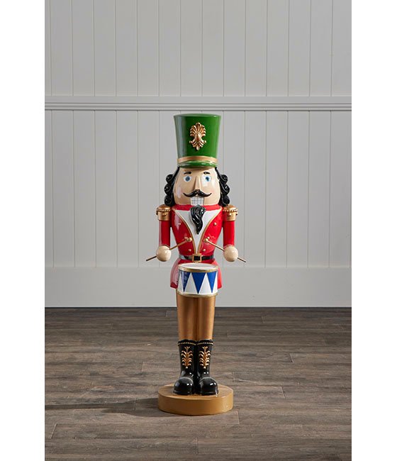 Our 95cm Red and Gold Nutcracker is the perfect addition to enhance your display, standing tall and poised to play the drum, evoking the festive spirit. Its beautiful craftsmanship features vibrant red, green, and gold hues, radiating warmth and joy, making it a delightful piece for your display.