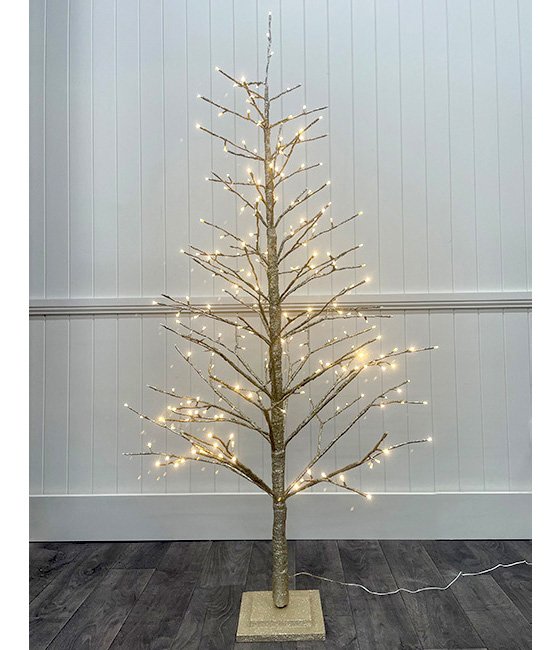 The Champagne Gold Pre-lit Christmas Tree 5ft (1.5m) is an elegant Christmas Tree which will bring a touch of class to your festive display. The dispersed branches and Warm White LED lights combine with the glittery finish for a beautiful tree with an easy “all-in-one” assembly.