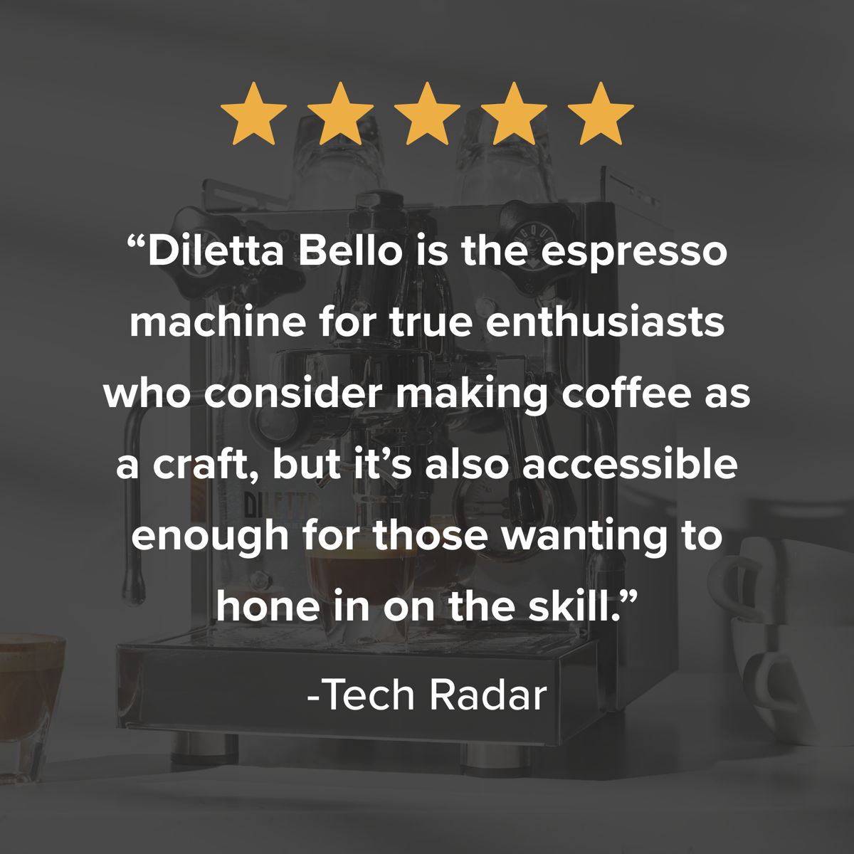 Take your Espresso to the next level and brew the best espresso beans you can get with the prosumer performance of the Diletta Bello espresso machine! The Diletta Bello’s minimalist design features an E61 style group head, which is heated by water from the boiler. The result is rock-solid temperature stability and delicious espresso. Plus, you can froth your favorite milk, whether it’s almond milk, soy milk, oat milk, or traditional dairy while you brew with the Bello’s heat exchanger boiler. Finally, each Diletta Bello is carefully built by hand in Milan, Italy, ensuring the very best quality and reliability. Available in stainless steel, or powdercoated black or white colors.