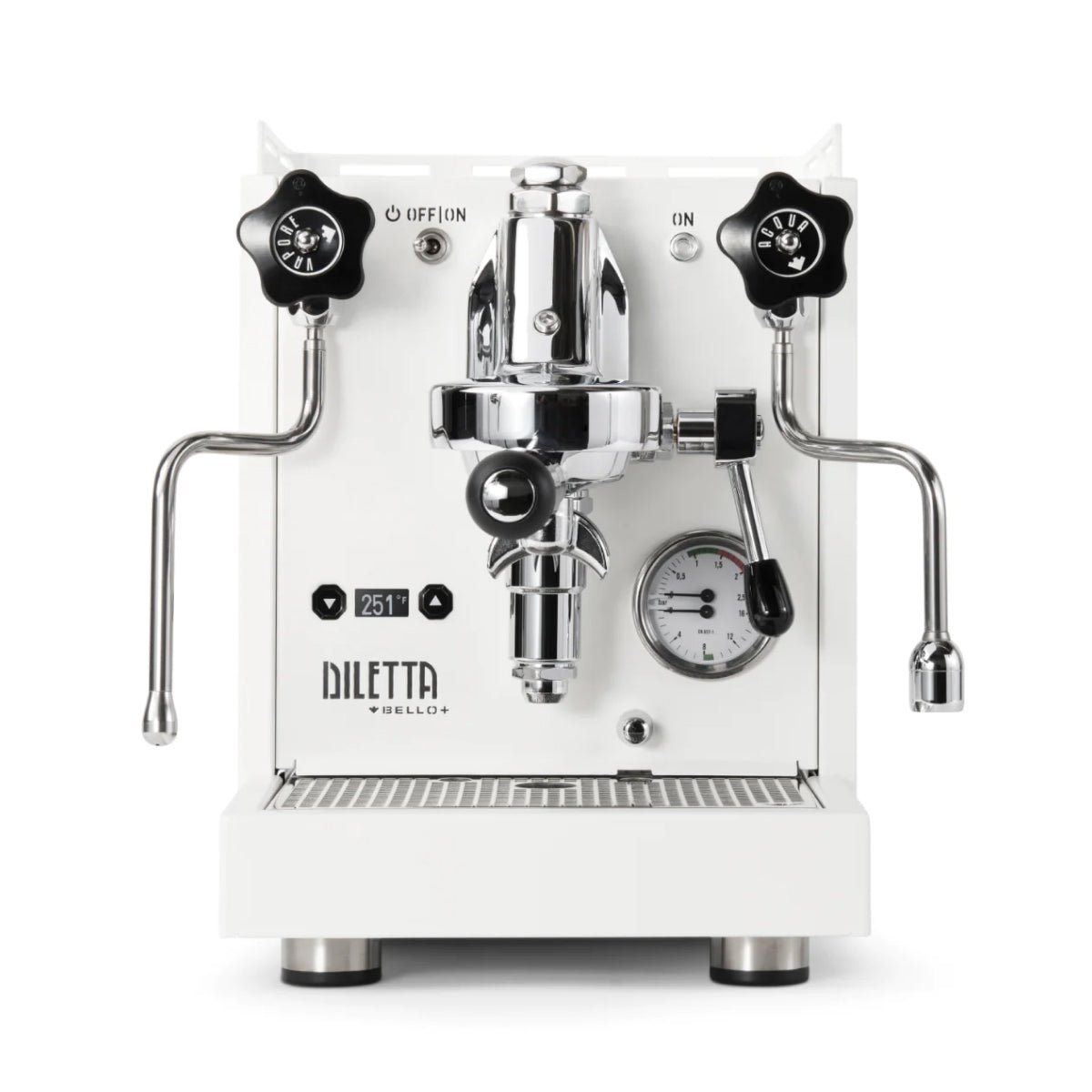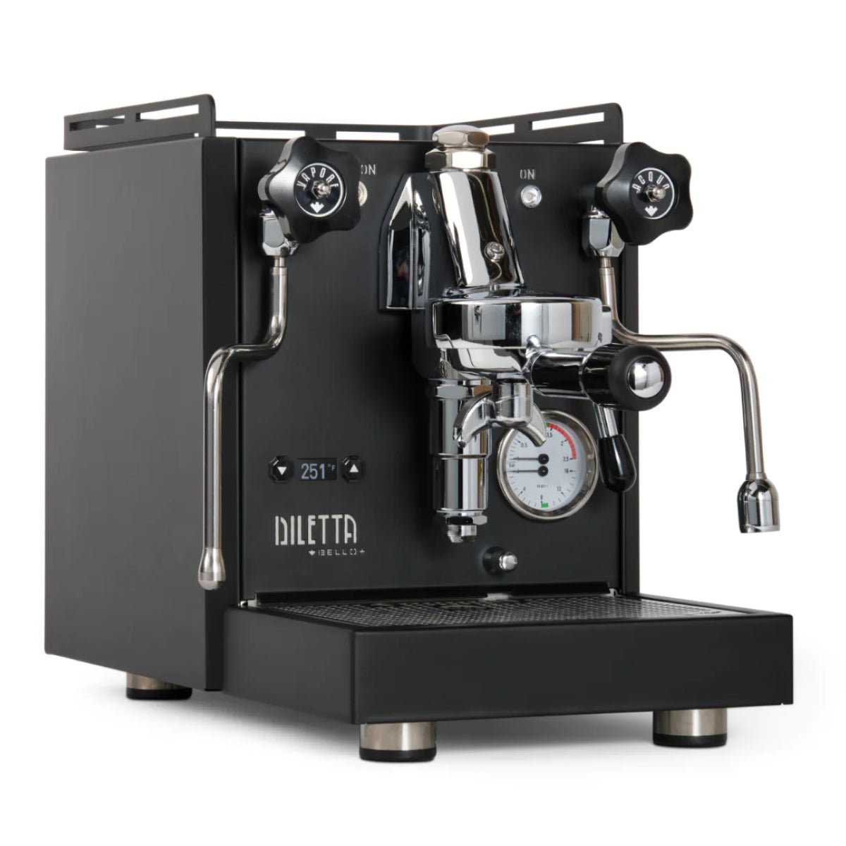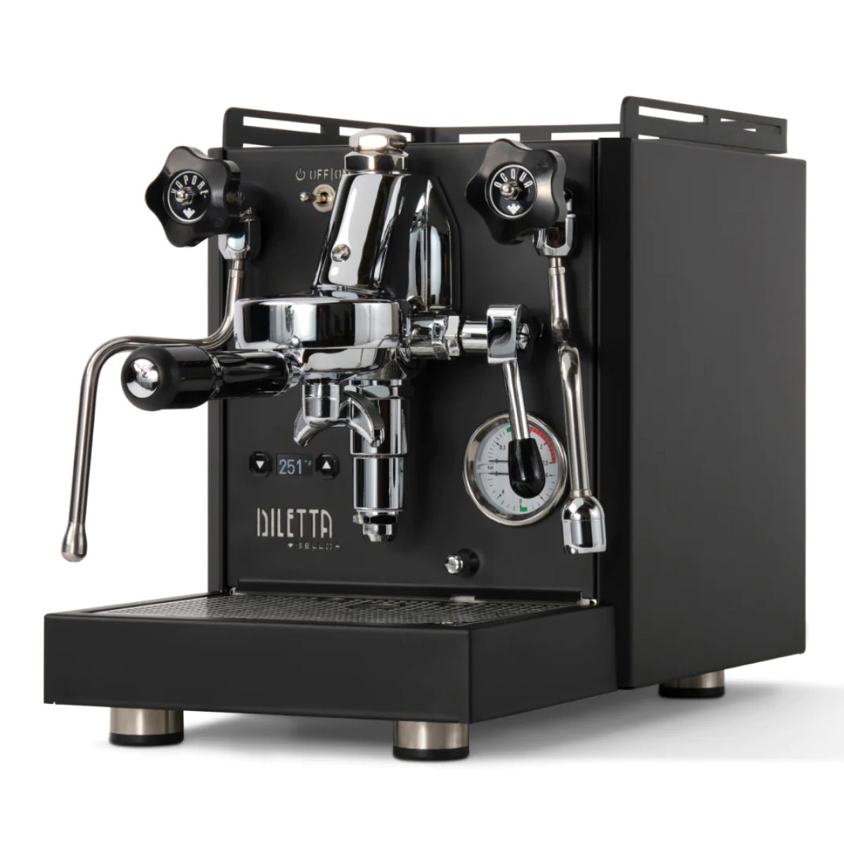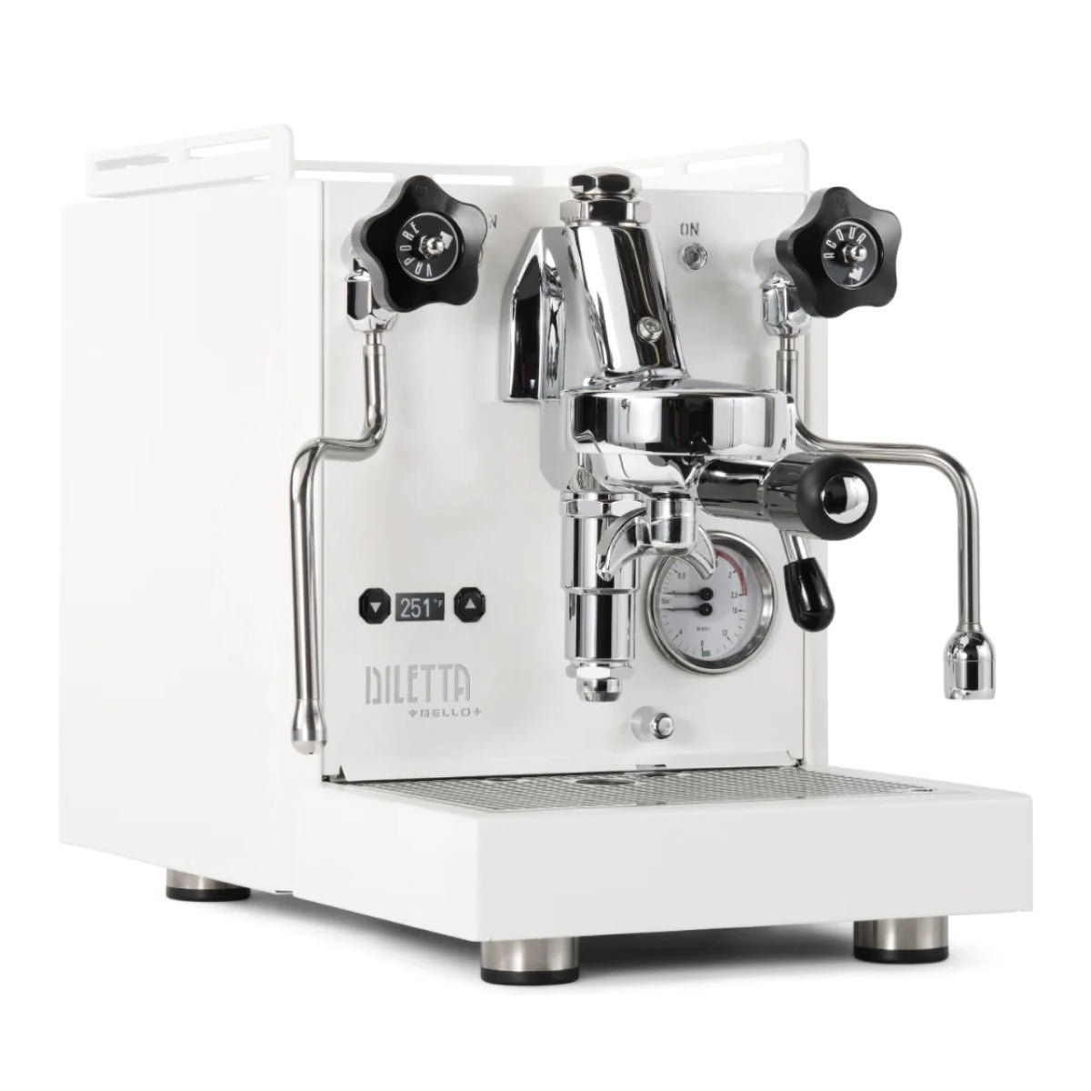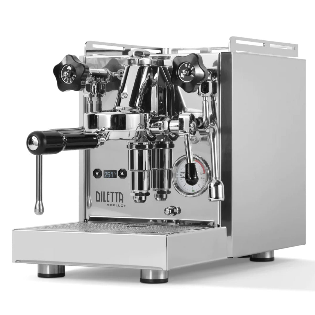 Bring a touch of technology to your classic espresso setup with the Diletta Bello+ Espresso Machine. Following the popularity of the original Bello, the Bello+ adds PID temperature control, an integrated shot timer, programmable pre-infusion, and a low-power eco mode—all with an aim to improve your shot consistency and overall machine usability. A PID controller puts instant access to temperature changes at your fingertips, and doubles as a shot timer when you lift the brew lever. The logic board behind the scenes also opens up programming options for pre-infusion (up to 10 seconds), and a new sub-boiling eco-mode that still seeks savings on energy consumption while offering vastly faster recovery times for your next shot. These upgraded features do not come at the expense of design, as the Bello+ retains the handcrafted steel build quality and simple manual controls of the Diletta Bello.