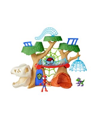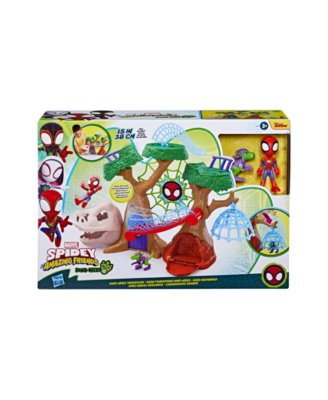 Imagine swinging into dino-chomping action and adventure with the Marvel Spidey and His Amazing Friends Dino-Webs Treehouse This girls boys action figure playset features a platform trap, dino fossil cave, collapsing web bridge, falling web cage, and more The Dino-Webs Treehouse also comes with a 4-inch-scale 10cm Spidey action figure and a 2.5-inch 6cm Goblin Raptor toy, so preschool kids can race into action to help Team Spidey take down the baddies Inspired by the Marvel preschool show, kids will love hanging with their favorite Marvel Superheroes and recreating epic adventures. Encourage big, imaginative adventure play for kids with more Spidey and his Amazing Friends toys Each sold separately. Subject to availability. Copyright Marvel. All trademarks and registered trademarks are the property of their respective owners. Hasbro and all related trademarks and logos are trademarks of Hasbro, Inc.