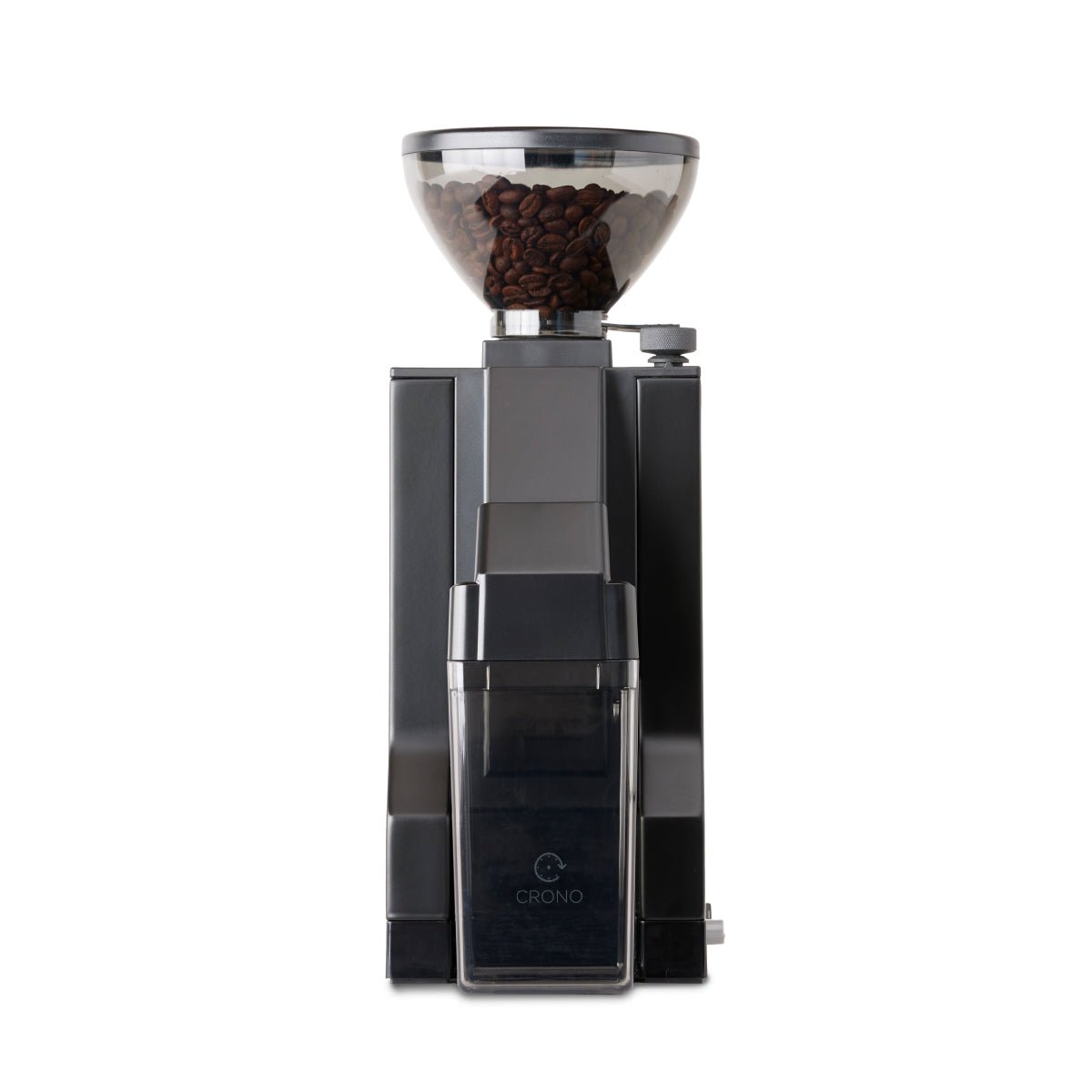 Get great grinds with the Eureka Mignon Crono Brew Coffee Grinder. Built on the same Mignon platform as the entry-level Filtro, the Mignon Crono expands on the former’s coffee grinding prowess with a discrete timer for one touch grinding. Simply find your ideal pour over or drip coffee grind setting, time how long your dose takes, and set the side-mounted timer knob to match. Each Crono is built in sturdy metal, with hardened 50mm steel burrs and a brew-specific grind path for clump-free dosing. Finished with a 5.5-ounce hopper and grounds bin to match, the Crono makes for a standout addition to your kitchen.