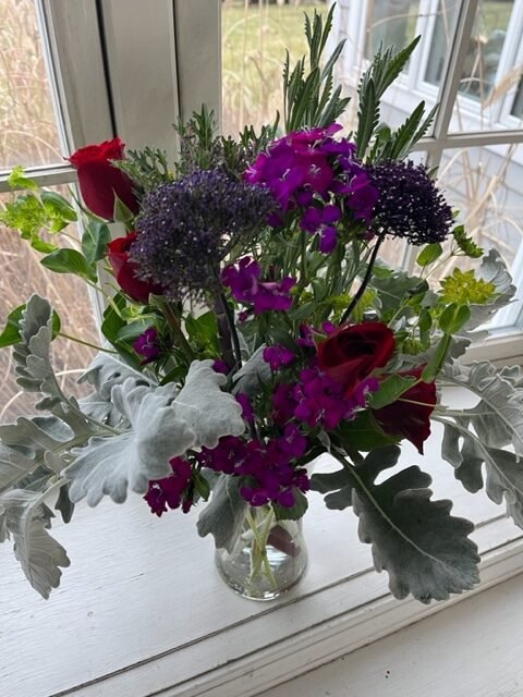 10 bouquets minimum. DYI Bulk. A passionate departure from the traditional red rose bouquet, this refreshing option for any event year round. Its intriguing shape gives way to an irresistible combination of dark lavender-hued blooms. Offering up a masterpiece of color and texture destined to be admired.
