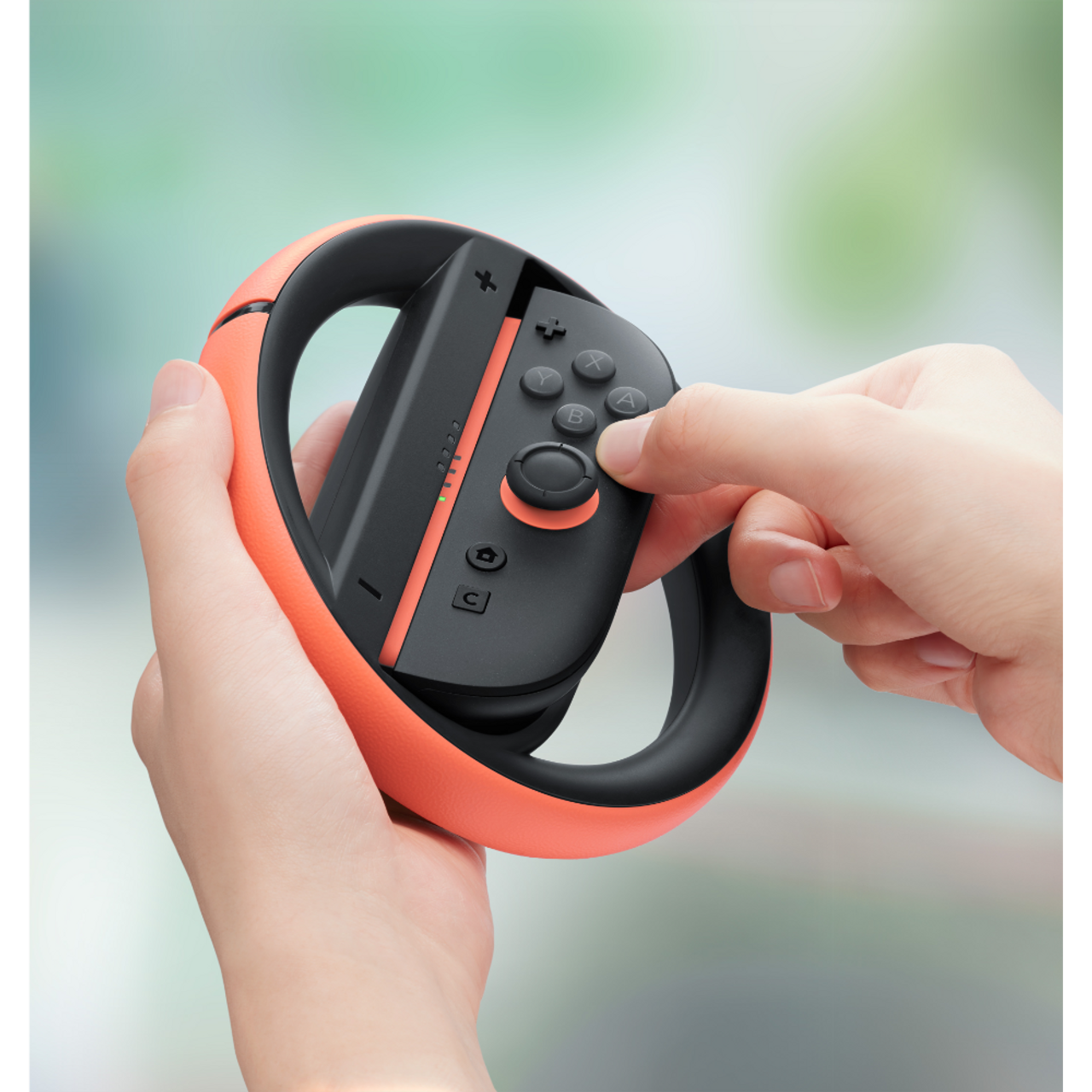 Place your Joy-Con™ 2 controller into the Joy-Con™ 2 Wheel to enjoy more realistic control in racing-style games. The smooth magnetic connection keeps your Joy-Con 2 controller secure even in the most wild race!