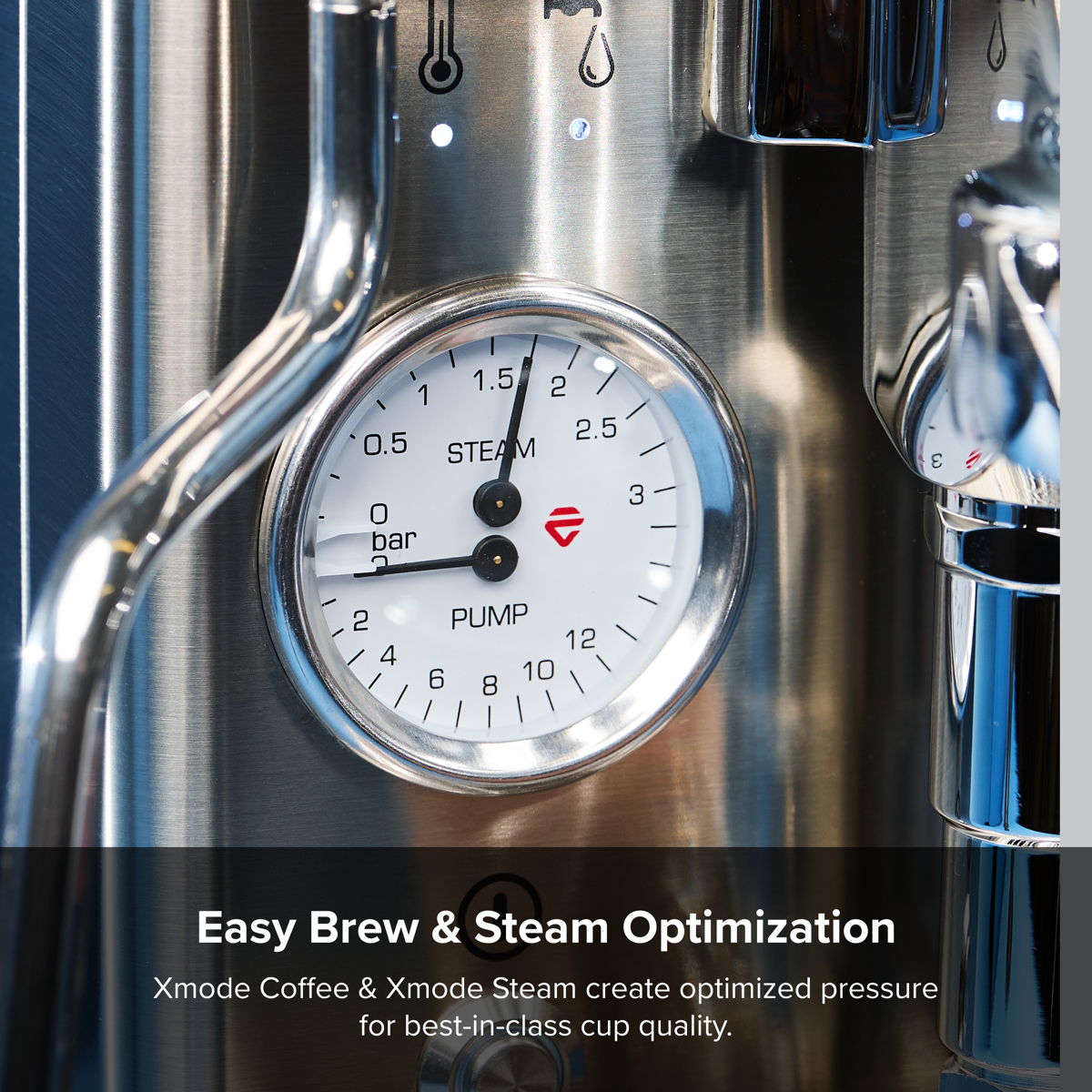 Make the most of your Kitchen counter space with the LELIT Mara X Espresso Machine. A compact, uber-consistent heat exchanger that prioritizes espresso quality over everything else, the Mara X eschews traditional espresso machine wisdom to make some of the best espresso in its segment. Unlike traditional heat-exchange machines that set steam pressure directly at the boiler, the Mara X uses a second sensor at the group to target brew temperatures first. A physical toggle behind the drip tray lets you set from 3 temperatures (197, 201, or 205 degrees); while a switch on the side of the machine offers two selectable brew modes. For espresso, select ‘Xmode Coffee’ to get the best temp consistency for coffee-only drinks. Switch to ‘Xmode steam’ to increase steam pressure after brewing for better milk frothing. More than just a technical marvel, the Mara X features a bevy of barista-saving benefits too: silent pump design, long-ramp preinfusion, a dual pump and steam pressure gauge, optional standby mode, an ergonomic portafilter, and a custom-fit precision tamper right out of the box. Between its high-tech temp management and user-centric design, the Mara X makes an excellent coffee companion for any enthusiast.