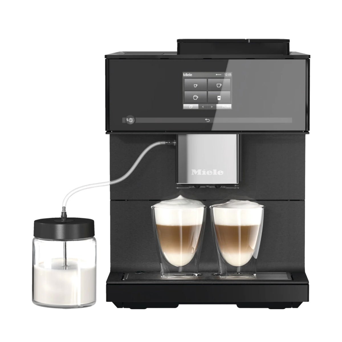 Automate everything with the Miele CM 7750 Coffee Select Espresso Machine. Built for maximum convenient luxury, the CM7 offers nearly every feature found in the superautomatic market—with a few extra accouterments to spare. Central to the CM7’s design is its color touchscreen control panel, which offers access to user profiles (10), drink recipes (20+), and cleaning profiles (automatic). Grinding and brewing with the CM7750 packs in premier usability features like a sound-insulated grinder, cup-height sensing spouts, and automatic rinsing after milk steaming. For the coffee aficionado, the Miele CM7 even offers 3 bean hoppers (and a bypass doser), allowing for different bean selections for each recipe in your profile. Cleaning is also best-in-class, with a dedicated descale cartridge that runs its own program, auto-rinsing between drinks, and dishwasher-safe brew components for the occasional deep clean. Take a load off and let the Miele CM7750 take care of the espresso effort.