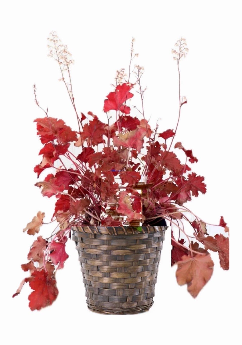 This hybrid Coral Bells selection is a terrific choice for adding a touch of color! The plant is beautiful, heavily ruffled leaves, amber to peach in color, holding well the entire season. Taller stems of small ivory bell flowers appear.