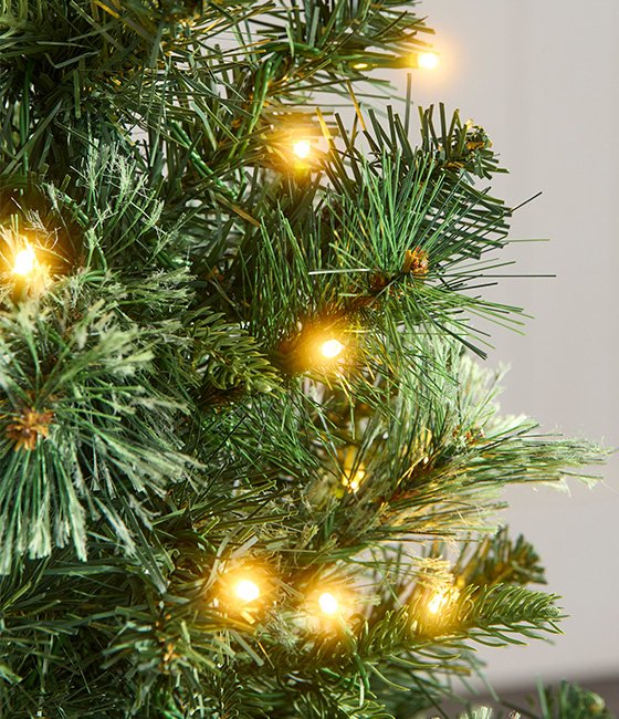 “The 4” Prelit Potted Tree” is a hinged style Christmas tree which has Warm White LED lights already attached and sits in its own decorative barrel style pot. It has a mixture of PVC and PE branches. This Christmas tree looks stunning on its own or add your own personal touch by using your own decorations.